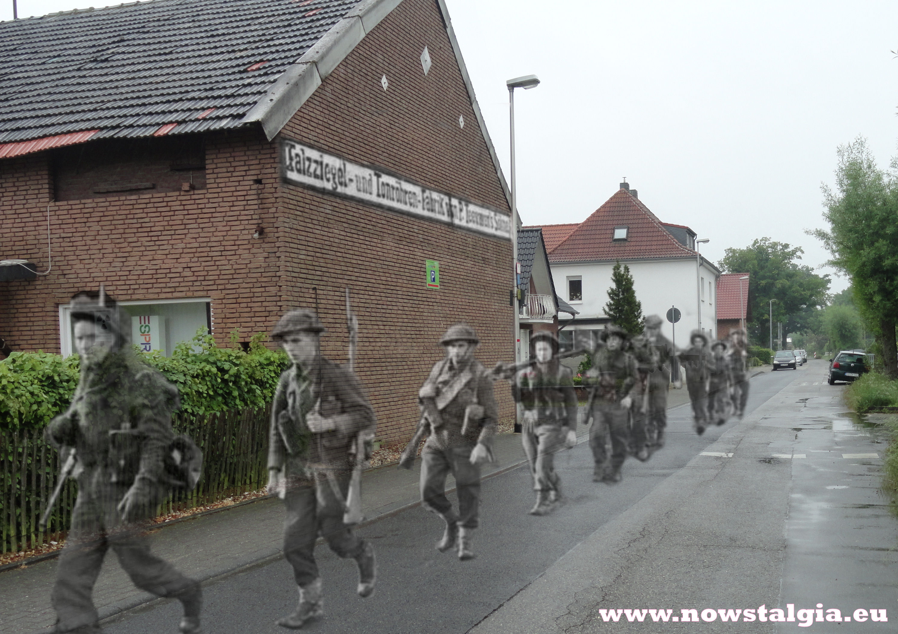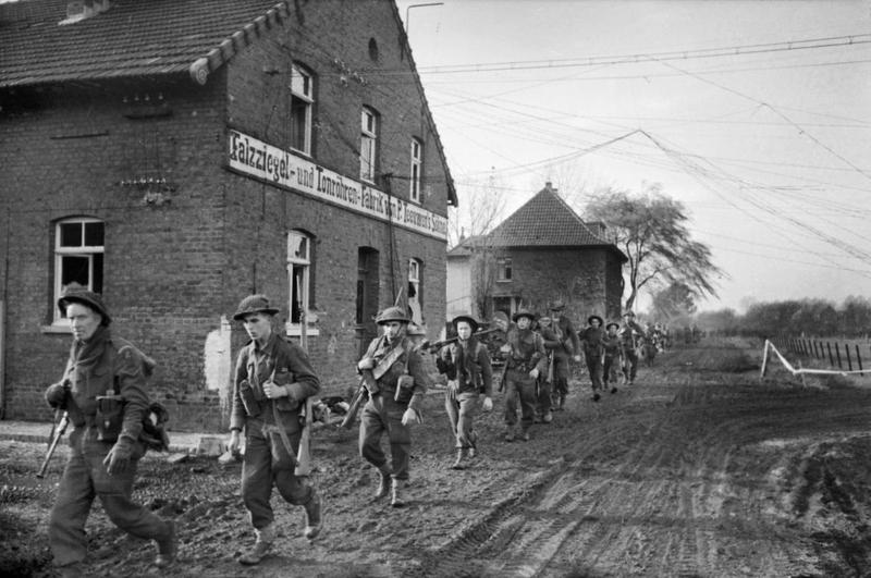 Infantry march through Gillrath near Geilenkirchen, 5 December 1944.
