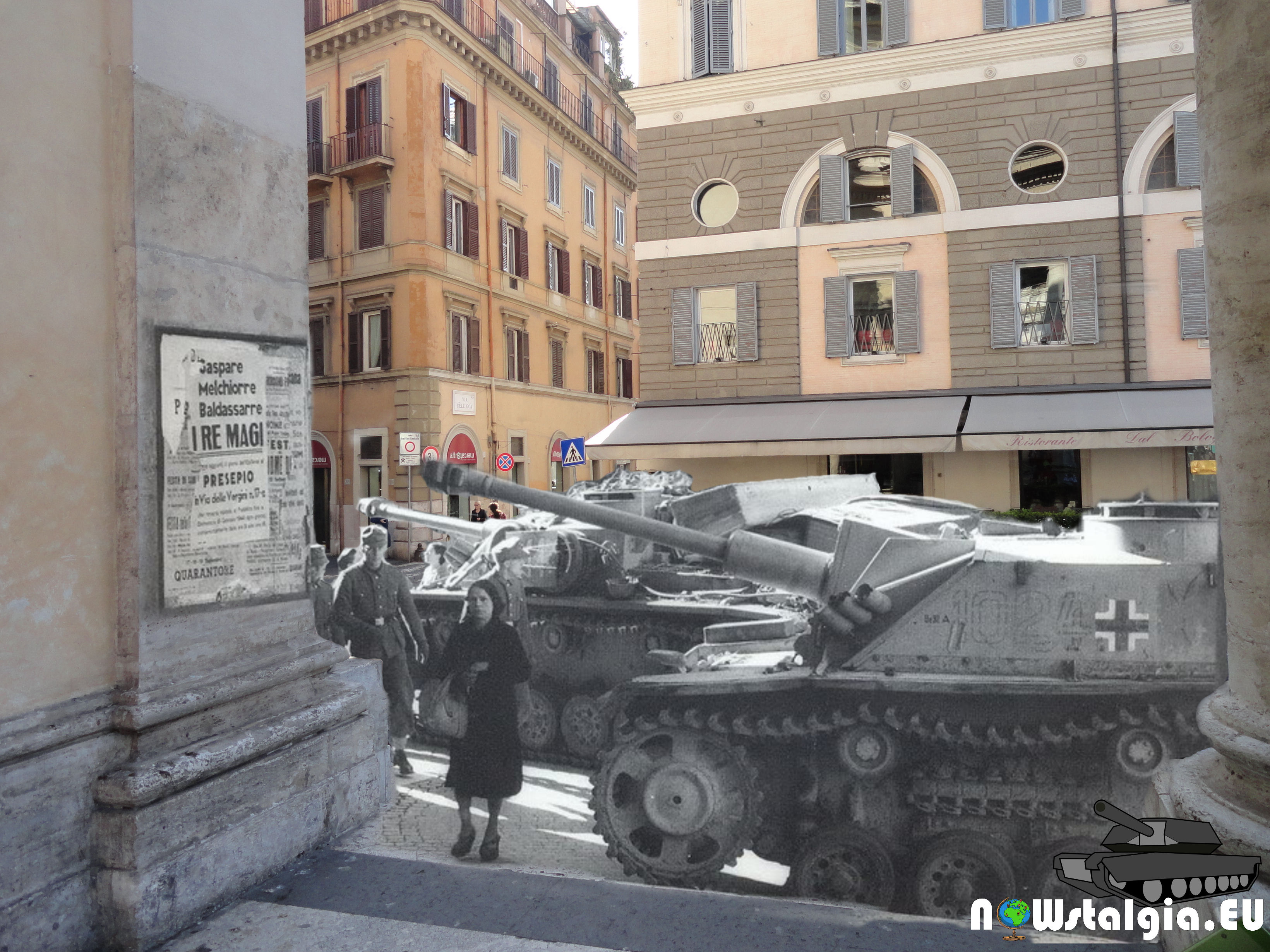 German tanks in Rome, near Piazza del Populo probably in 1943 or 1944.
