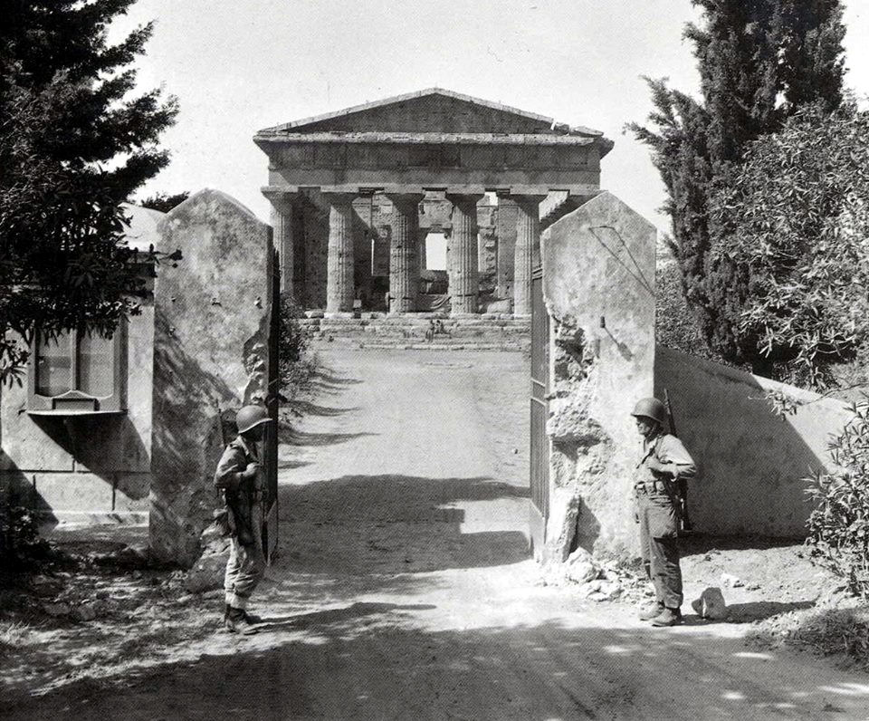 American maintenance, supply and medical services had their Headquarters at Paestum after going on land from the beaches of Paestum. The staff headquarters of the 480th harbour batallion was located in the Temple of Neptune.