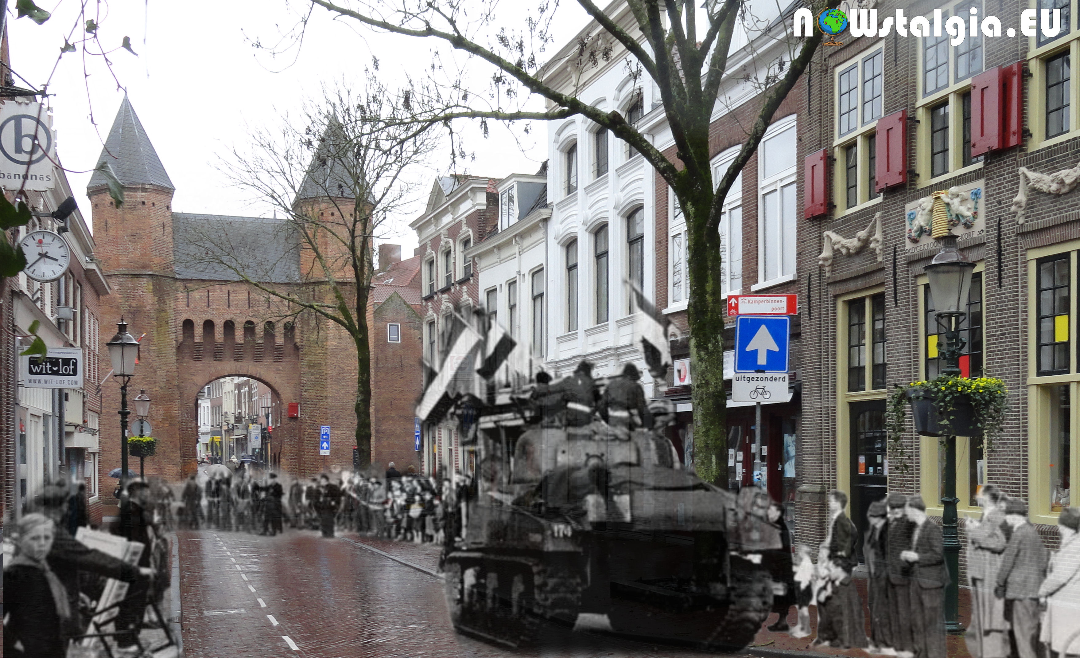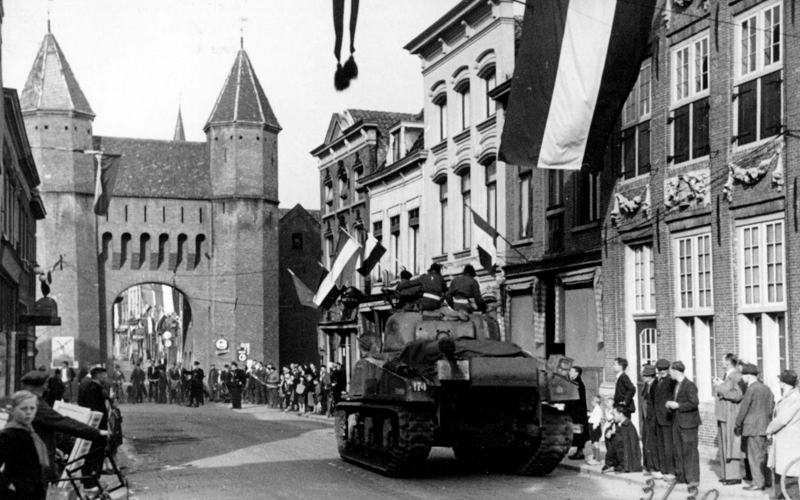 On Monday May 7th, 1945 the Canadian Allied Forces entered Amersfoort. The photo shows one of their tanks approaching the Kamperbinnenpoort.