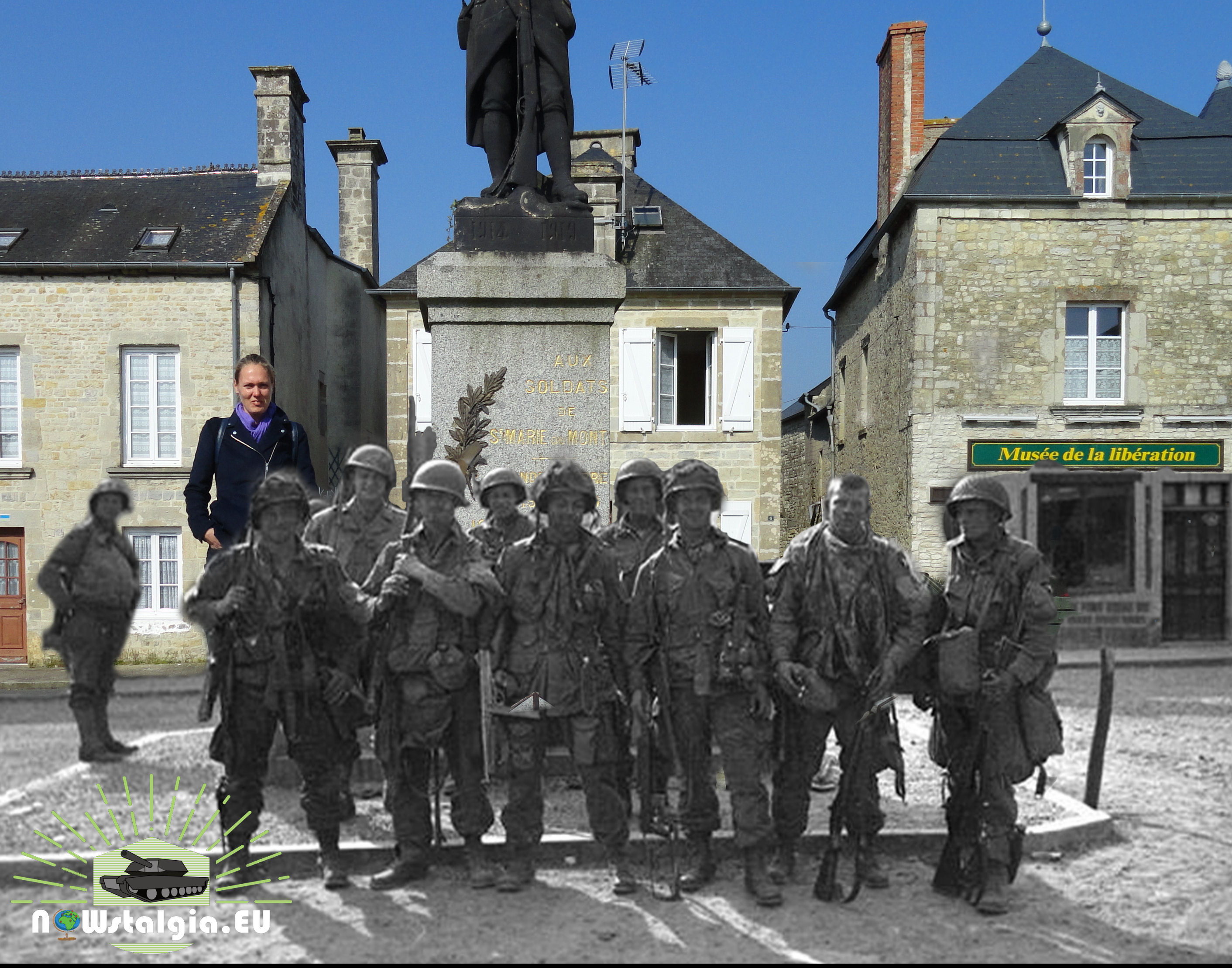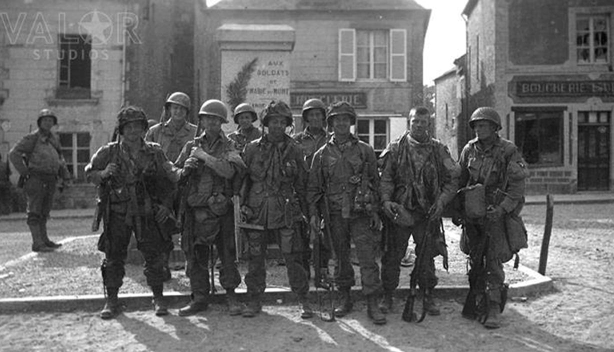June 7, 1944: In the square at Saint-Maire-du-Mont, Easy Company paratroopers