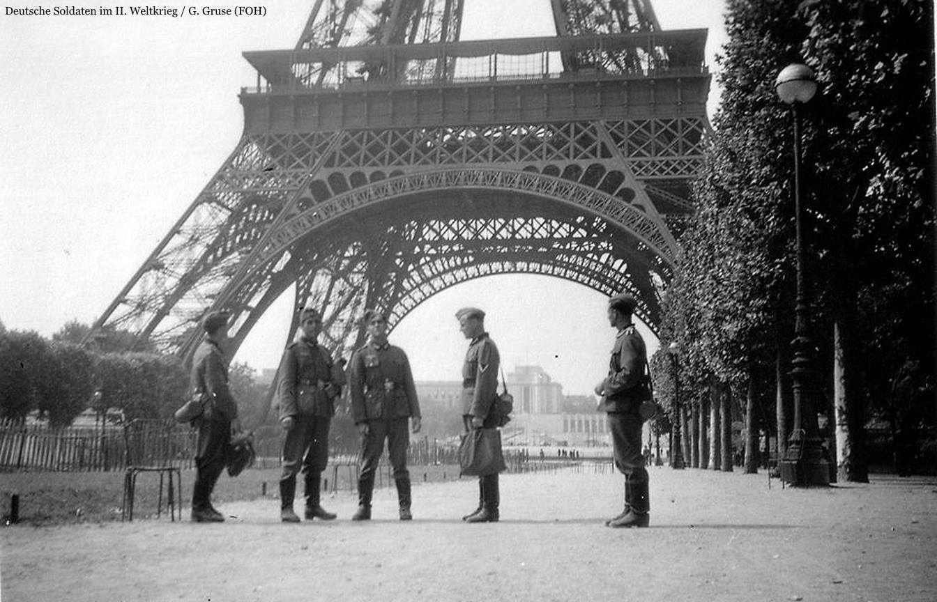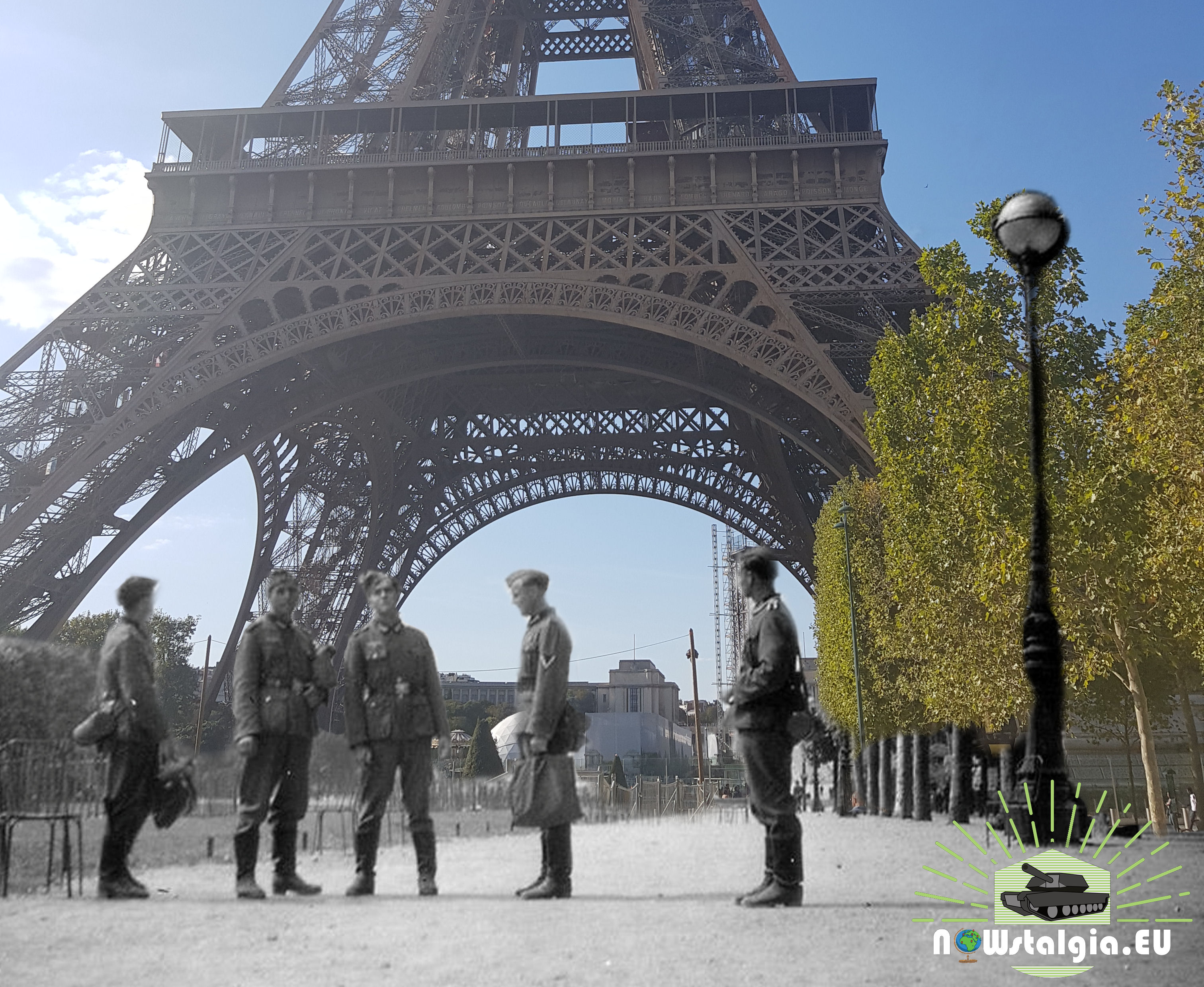 German soldiers in front of the Eiffeltower in Paris during the occupation of France.