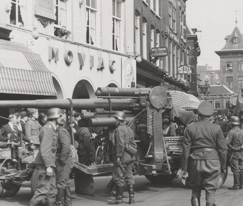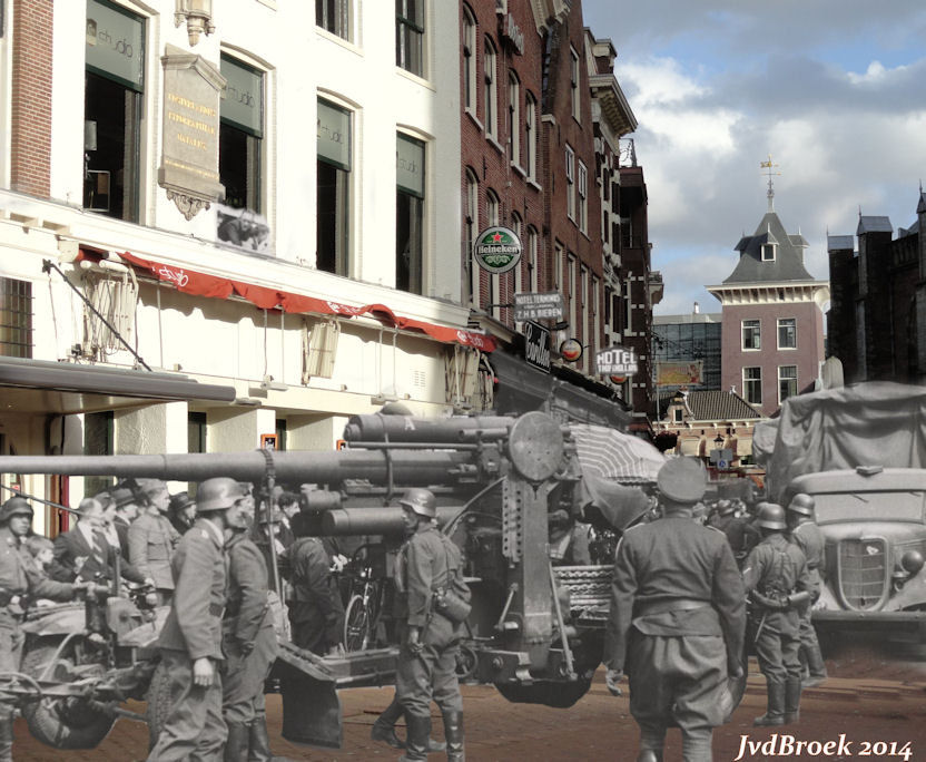 Arrival of the German troops on the Grote Markt at the corner of the Smedestraat, looking east, 16 May, 1940