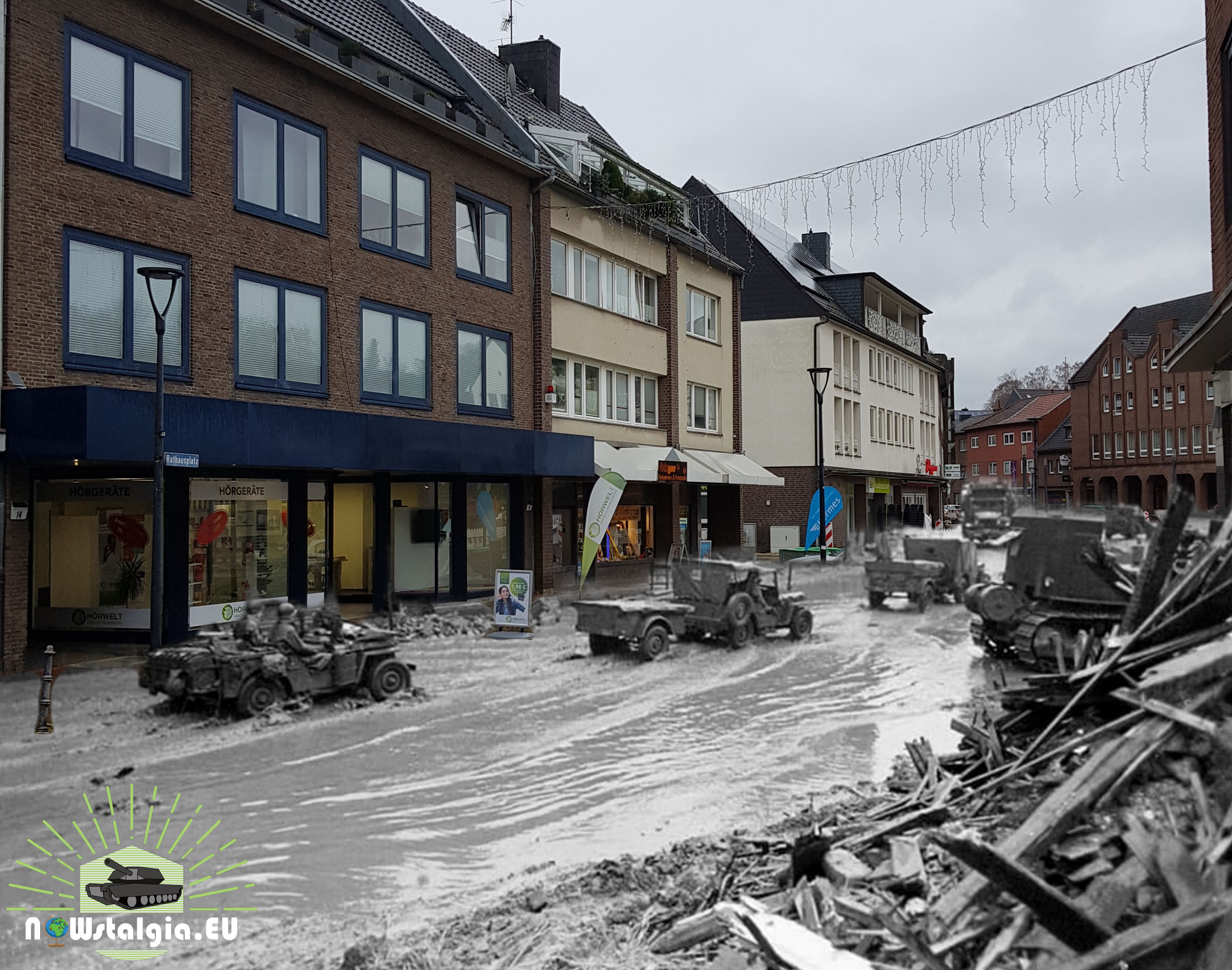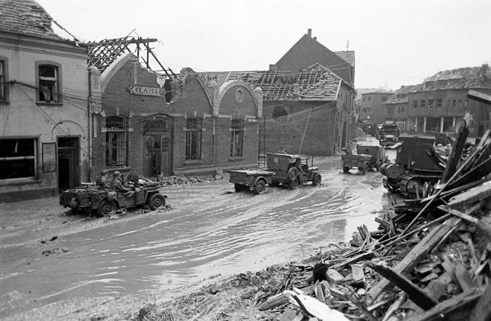 Soldiers of the 9th Army in the flooded streets of Ubach Palenberg, 1944.