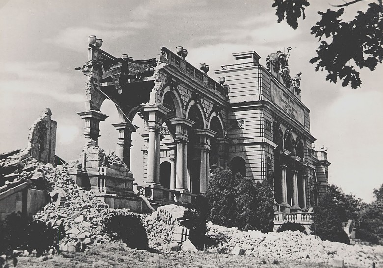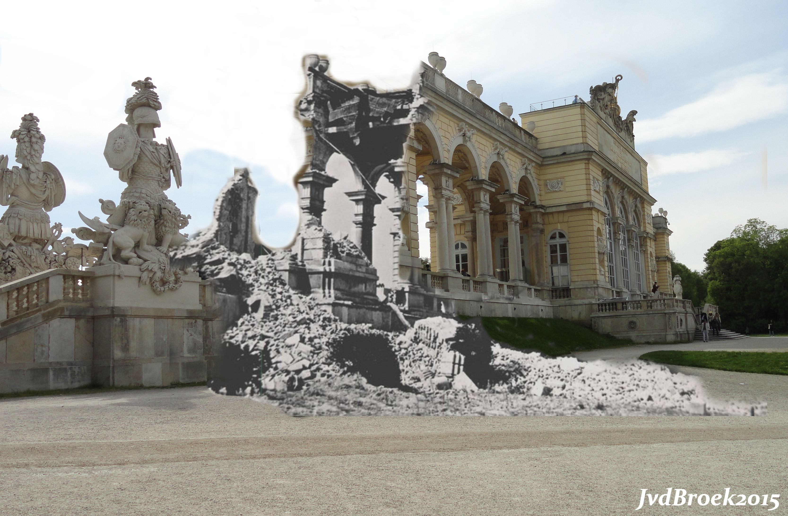 The Gloriette after receiving a direct hit in a bombing raid, photograph, 1945
