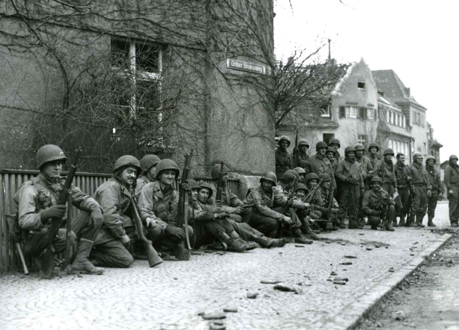 A small rest for US soldiers in the suburbs of Bickendorf in Köln during the attack for the city, 5 March 1945.