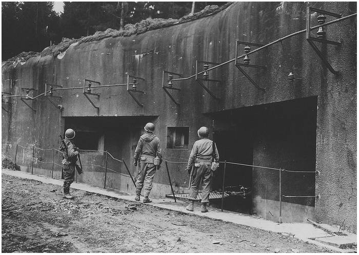 Maginotline 1944. U.S. troops at the Simserhof bunker after capturing it from the Germans in 1944.