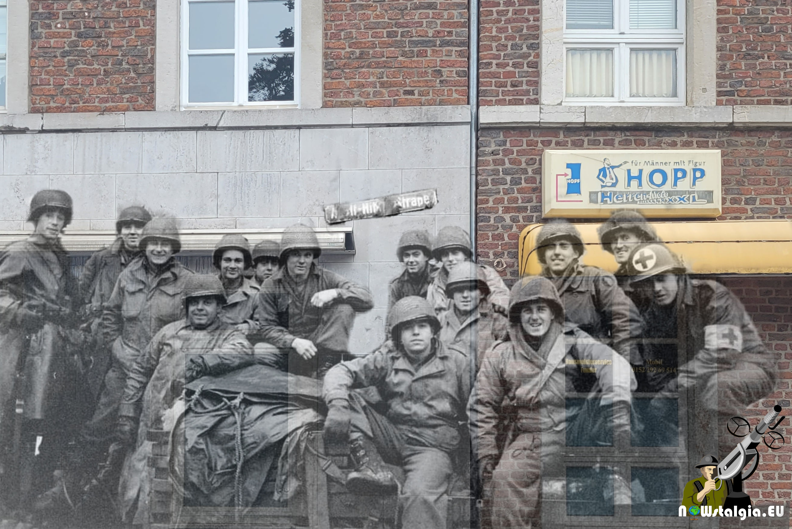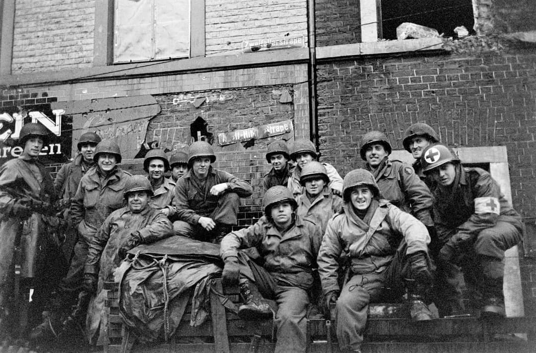 Personnel with the US 104th Infantry Division “Timberwolves” pose for a picture in Stolberg Germany – November 1944