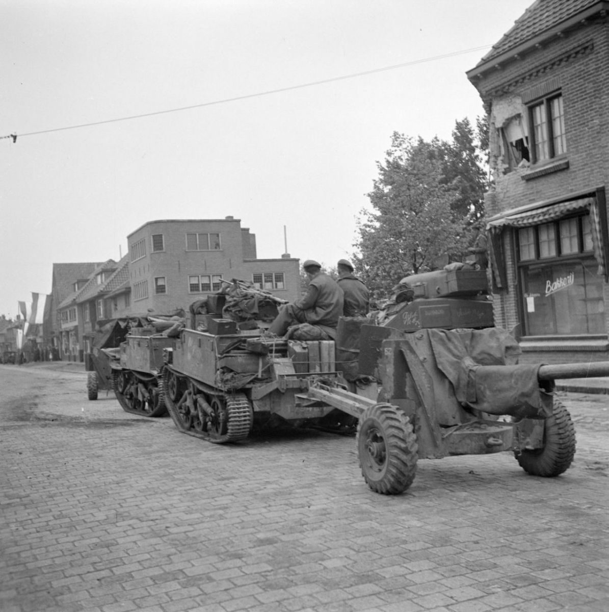 Irish guards in the main street of Aalst going towards Eindhoven, 18 September 1944.