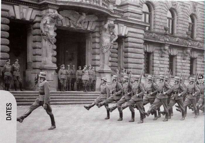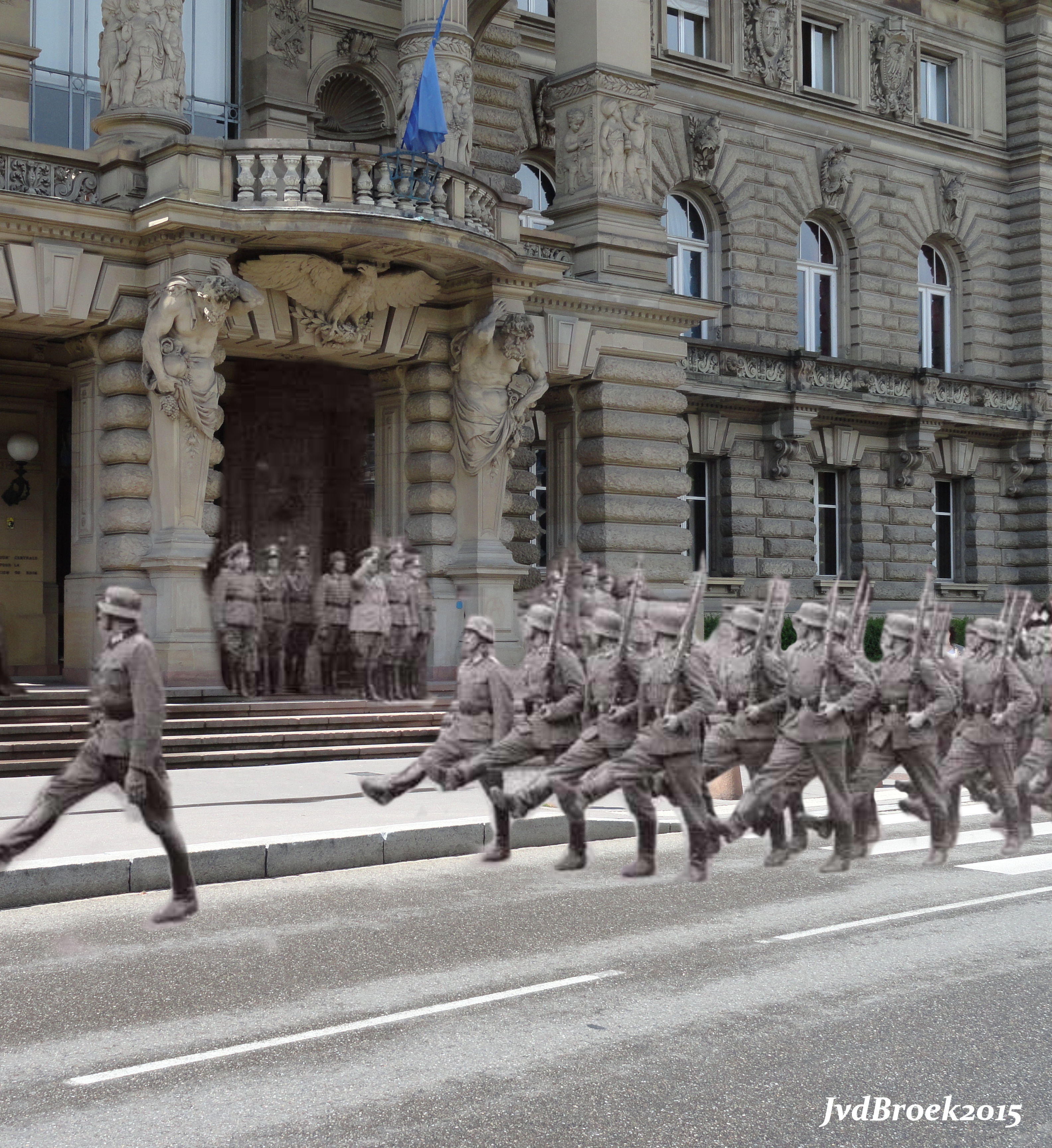 Germans soldiers marching at the Place de la Republique in Strasbourg.