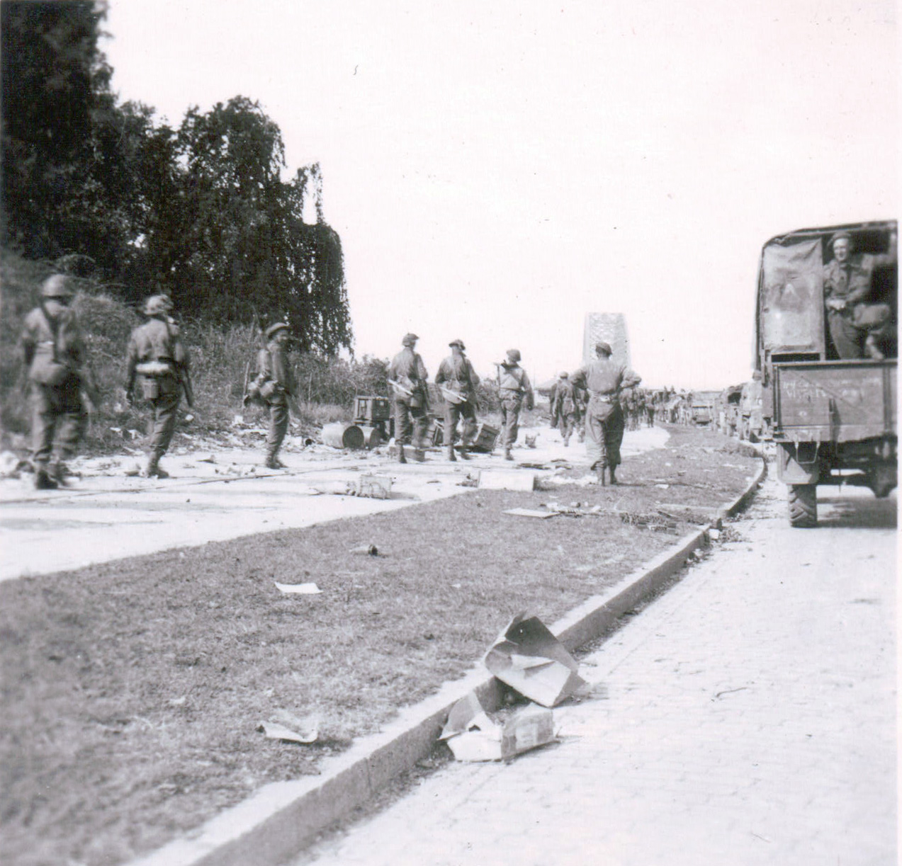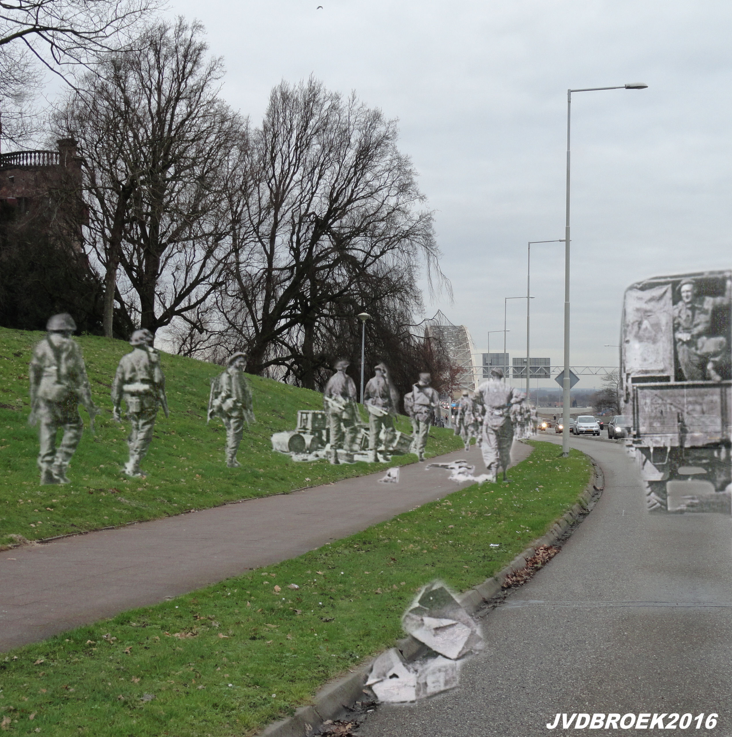 Operation Market Garden: Soldiers moving through Nijmegen’s Hunner Park to the bridge over the Waal River. Shortly after being secured by the US 82nd Airborne Division.